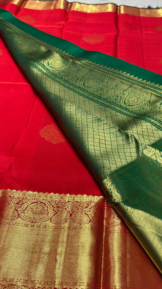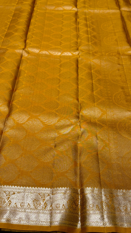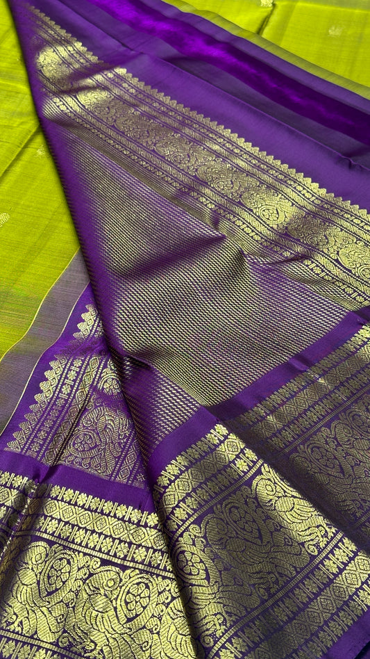 Elegant Cream & Green Kanjivaram Silk Saree with Gold Zari Work – Traditional Bridal Wear